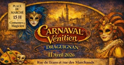 - Carnaval Vénitien à Draguignan : masques, magie et ateliers créatifs pour une après-midi hors du temps Tous publics Le 11 avril prochain, le quartier des arts de Draguignan se transforme en Venise le temps d'un samedi. L'association AQAD vous convie à un carnaval vénitien haut en couleurs, gratuit et ouvert à tous. samedi 11 avril Centre Ville Draguignan