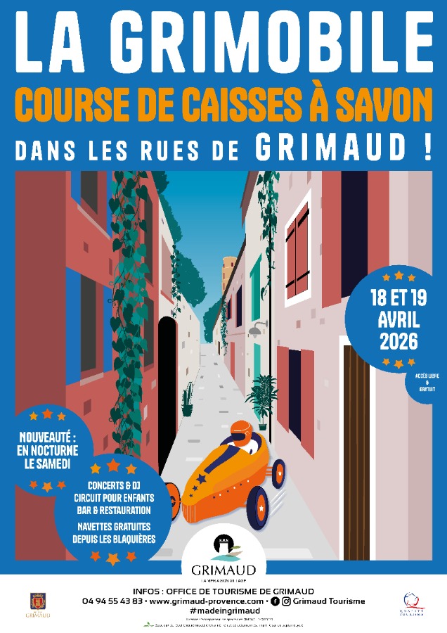concert gratuit en famille Festivités loisir La Grimobile : course de caisses à savon, 2ème édition ! Du 18/04/2026 au 19/04/2026 Publié par Guillaume LELARD le 23/02/2026 par quefaireenfamilledanslevar 23/02/2026 Retrouvez la Grimobile : course de caisses à savon la plus déjantée de la région, pour une 2ème édition encore plus drôle, encore plus folle et encore plus spectaculaire ! Vous l’avez aimée, plébiscitée et vous en redemandez ! Après une 1ère édition couronnée de succès et une ambiance inoubliable, la Grimobile revient en force avec un week-end complet d’amusements, de vitesse et de bonne humeur : une nocturne le samedi 18 avril et une journée entière le dimanche 19 avril 2026. Accrochez-vous, la descente s’annonce mémorable ! Vous pourrez voir les plus belles caisses à savon « faites maison » descendre notre circuit sécurisé de 300 mètres à travers le village de Grimaud, au départ du parvis de la Mairie, traversant la Place de l'Église et la Place Vieille et arrivant sur la Place Neuve. Les situations pourront être cocasses grâce aux descentes endiablées, aux virages serrés du parcours et aux obstacles placés là par surprise ! Pourquoi sur 2 jours ? - 20 caisses à savon participeront aux courses du samedi en nocturne dans une ambiance particulièrement festive avec concerts et illuminations. A l'issue de cette soirée, la moitié des véhicules (les 10 caisses à savon ayant réalisées le meilleur chrono) seront invitées à revenir le lendemain après-midi, dimanche 19 avril, pour les grandes finales. - 30 caisses à savon participeront aux courses du dimanche en journée. A l'issue de cette série, la moitié des véhicules (15 caisses à savon ayant réalisées le meilleur chrono) seront invitées à participer aux finales de l'après-midi, avec les 10 véhicules sélectionnés la veille. Ainsi, 25 véhicules (la moitié des inscrits) participeront à la grande finale du dimanche après-midi dans les rues de Grimaud ! Les concurrents vous émerveilleront par leur ingéniosité et leur originalité lors des deux manches chronométrées, et feront le show s'ils veulent repartir avec un trophée puisque plusieurs prix seront à gagner. AU PROGRAMME : Samedi 18 avril, en nocturne ! 20 véhicules (les 10 meilleurs véhicules seront sélectionnés pour participer à la finale du lendemain) - 16h15 : concert des Acou’sur ! - 16h45 : inauguration du circuit - 17h00 à 18h30 : manche d’essai non chronométrée - 18h30 à 19h30 : 1ère session chronométrée (de jour) - 19h30 à 20h30 : concert des Acou’sur ! - 20h45 à 21h45 : 2ème manche chronométrée (en nocturne) - 21h45 à 22h00 : concert des Acou’sur ! Dimanche 19 avril, en journée 30 véhicules (les 15 meilleurs se qualifieront pour les finales de l’après-midi) - 11h00 à 13h00 : manche d’essai non chronométrée - 13h15 à 13h45 : concert des Hot Wax ! - 14h00 à 15h15 : 1ère session chronométrée - 15h15 à 16h30 : 2ème manche chronométrée - 16h30 à 17h00 : concert des Hot Wax ! Dimanche 19 avril, soir Grande finale à 25 véhicules, avec les 10 plus rapides du samedi soir et les 15 plus rapides du dimanche ! - 17h00 à 17h15 : présentation des équipages et parade des candidats - 17h30 à 18h30 : finale chronométrée - 18h30 à 19h00 : concert des Hot Wax ! - 19h00 : remise des prix - 19h30 à 20h00 : concert des Hot Wax ! L'ambiance sera assurée tout au long de ce week-end avec aux platines, DJ Jessica, son set énergique et sa capacité à enflammer les foules : experte dans l’art du mix, elle jongle avec brio entre différents styles musicaux pour faire vibrer le public et garantir une atmosphère entraînante. Le samedi soir, pour prolonger la dynamique festive, Les Acou’sur seront également de la partie, et mettront le feu sur scène avec trois concerts live. Acou’sur c’est une dose de bonne énergie communicative ! Un répertoire varié que vous connaissez à coup sûr, revisité en version country énergique et fun, avec une maîtrise du live et de l’ambiance festive. Le groupe Hot-Wax débarque en live avec un rock puissant, généreux et terriblement communicatif. Riffs accrocheurs, énergie brute et présence scénique explosive : chaque concert devient un vrai moment de fête. Un show intense, authentique et immanquable pour tous les amoureux du rock qui claque. Pendant que les caisses à savon dévaleront la piste, les plus jeunes pourront eux aussi s’amuser sur leur propre circuit, au volant de voitures à pédales. Un espace pensé pour que toute la famille profite pleinement de l’événement. Fous rires et bonne humeur seront au rendez-vous tout au long de l'événement ! Tous publics Du 18 avril au 19 avril 2026 16:00 > 20:00 GratuitGratuit Tous publics Place Neuve Place Neuve 83310 Grimaud 0494554383 evenements@grimaud-provence.com FacebookTwitterEmail A découvrir également Que faire pendant les vacances de février avec les enfants ? Que faire avec des enfants à Toulon ? 10 idées de sorties en famille Carnavals d'ici et d'ailleurs, une exposition à découvrir en famille dans le Var Les Studios Rembrandt pour expérimenter en famille à Draguignan Palomano ouvre à Puget-sur-Argens un nouveau parc ludo-éducatif pour les enfants ! Sur la Côte d'Azur, 40 musées et monuments ouvrent grand leurs portes lors de Mon Week-end aux Musées De belles chutes de neige dans les Alpes du Sud : La météo des neiges de ce weekend du 10 et 11 janvier La météo des neiges de ce weekend du 3 et 4 janvier Les programmes des festivités de Noël durant ces vacances dans les Alpes du Sud